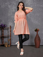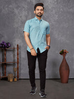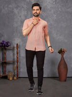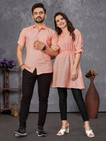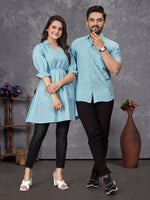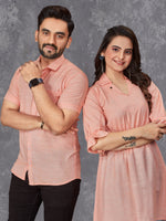 Looks like a slub cotton or cotton-silk blend with a subtle sheen, giving it a slightly textured yet elegant appearance.
