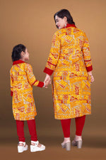 A delightful matching set of clothing designed for both mothers and babies, featuring coordinating patterns or styles, creating an adorable and harmonious look for both the mother and her baby.